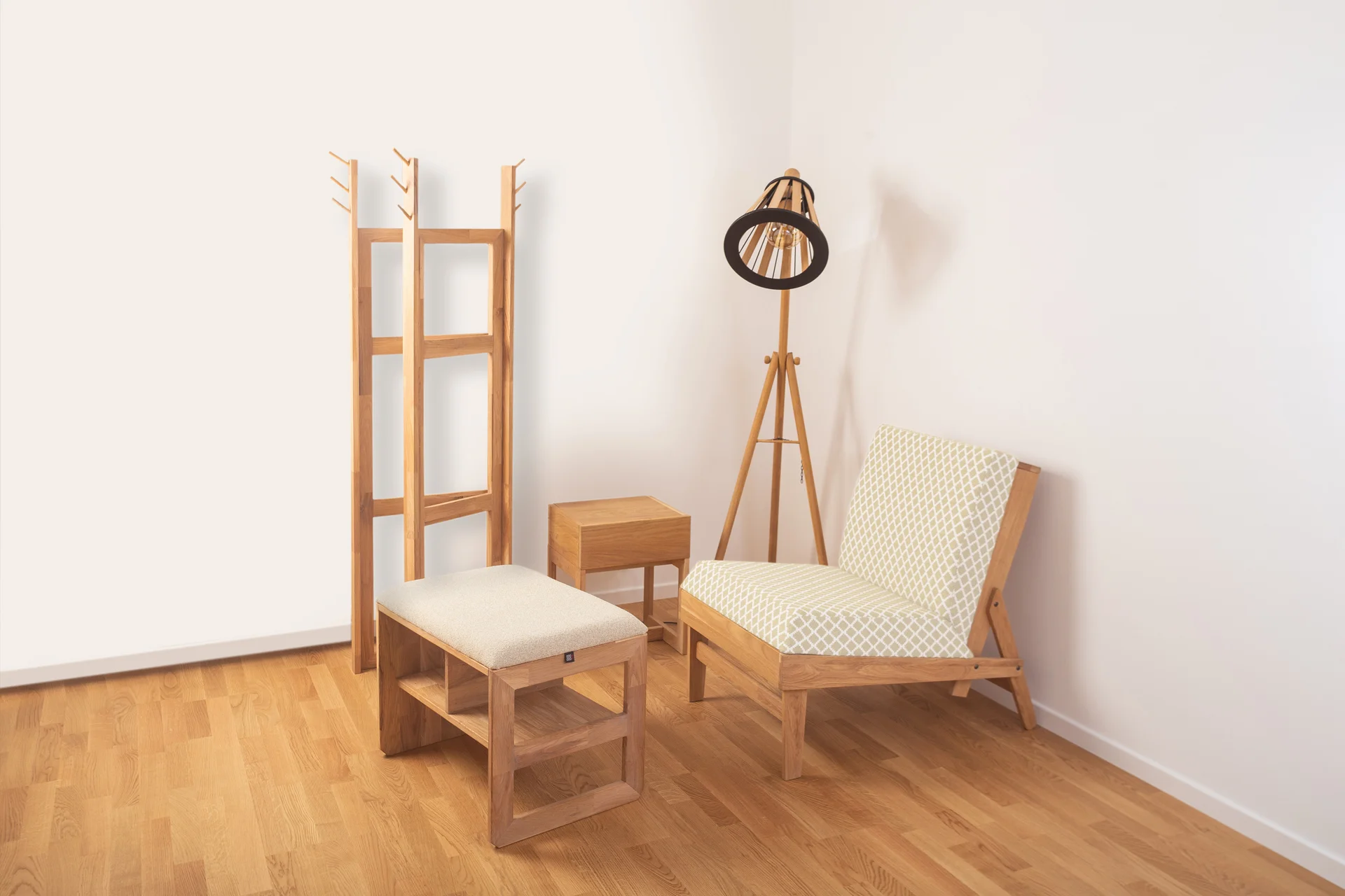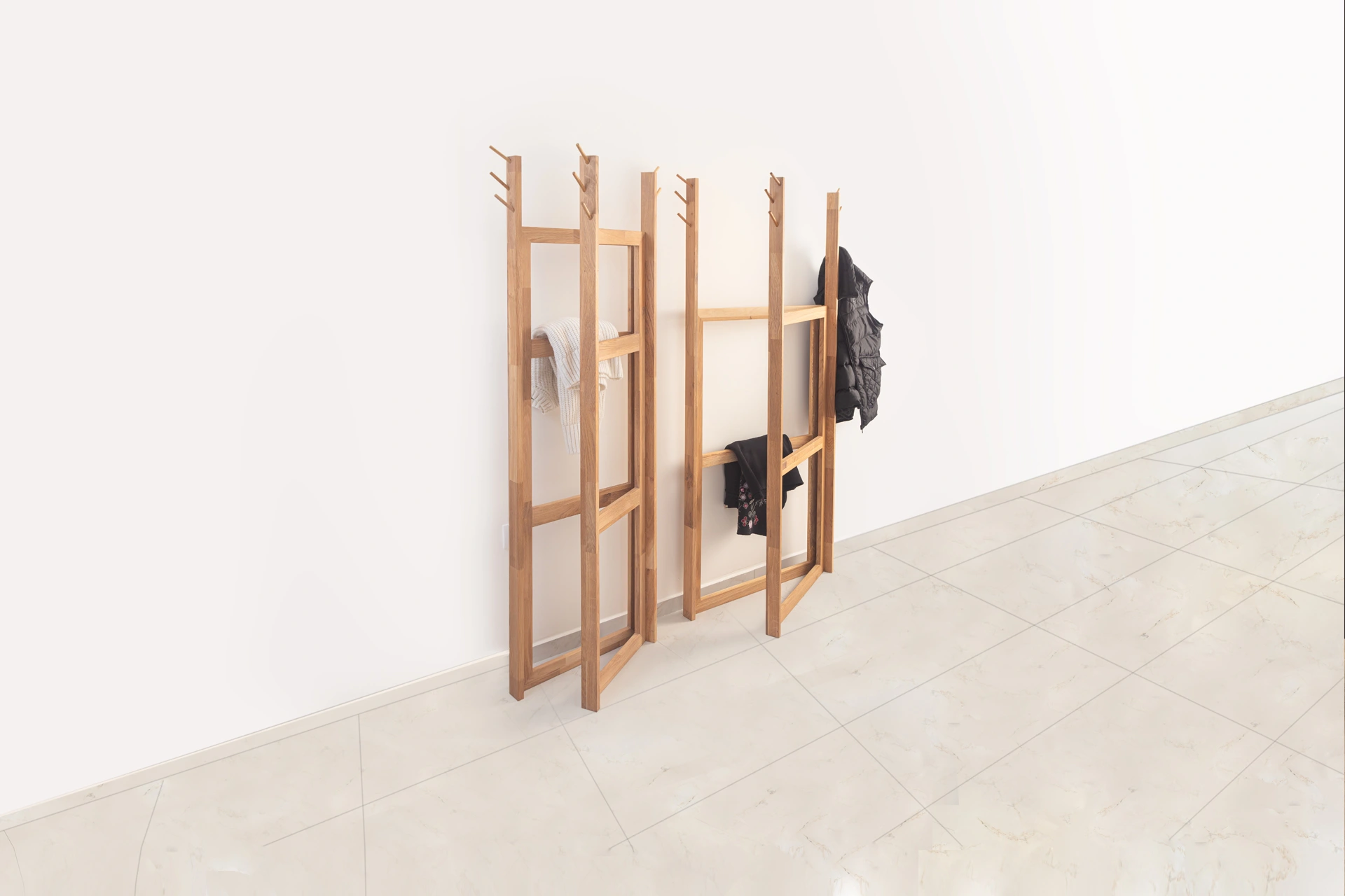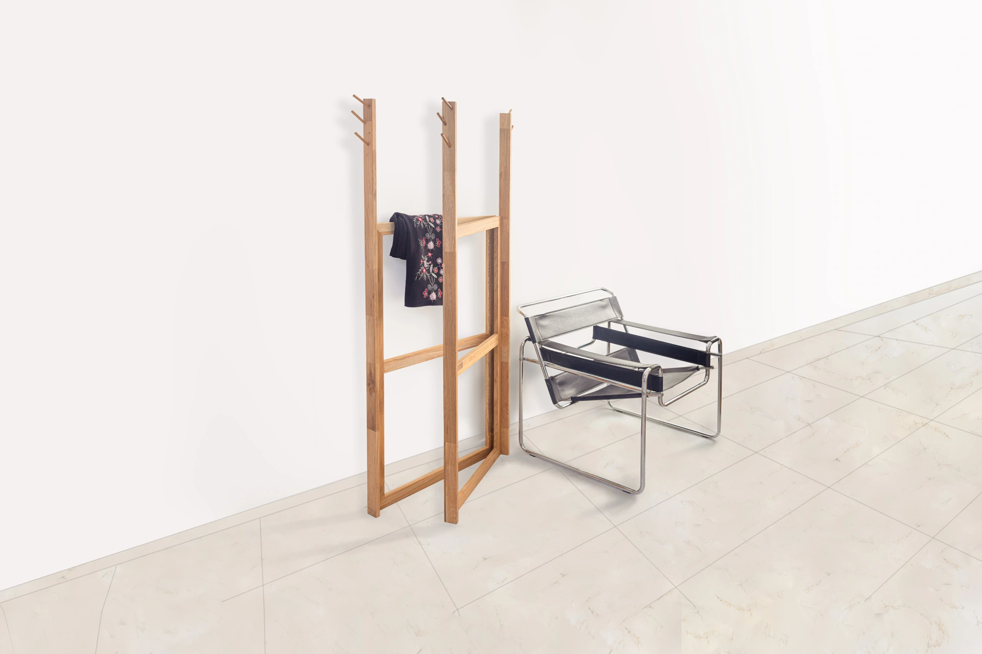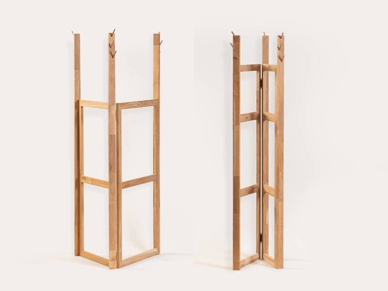 Da li ste ikada došli kući, presvukli se i samo prebacili nošenu odeću preko stolice, a zatim to ponavljali iz dana u dan, sve dok stolica nije izgubila svoj oblik? Čiviluk Merdevine predstavlja najneobičniji komad iz WMD kolekcije nameštaja, dizajniran da zameni tu istu stolicu. Izuzetno elegantan i fleksibilan, ovaj komad izgleda kao nešto što ste već koristili, ali sa drugačijom namenom – kao stalak za odeću. Sastoji se od para merdevina različitih visina, koje su međusobno povezane.