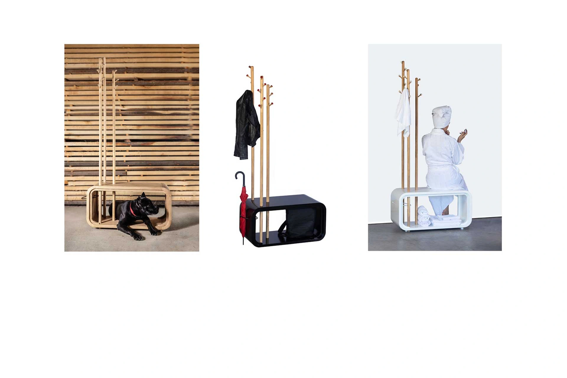 Multiverzum Nature je jedan od inovativnijih komada iz ponude brenda Wood Mood Design. On na jednom mestu objedinjuje sve što vam treba u hodniku. Dizajniran je tako da su u njemu sadržani čiviluk, klupica, polica, držač za kišobrane, ali i kućica za životinje. Sve to u jednom proizvodu! Sastoji se od dela za kačenje, kubusa koji se može koristiti za sedenje i odlaganje stvari kao i prstena za kišobrane.