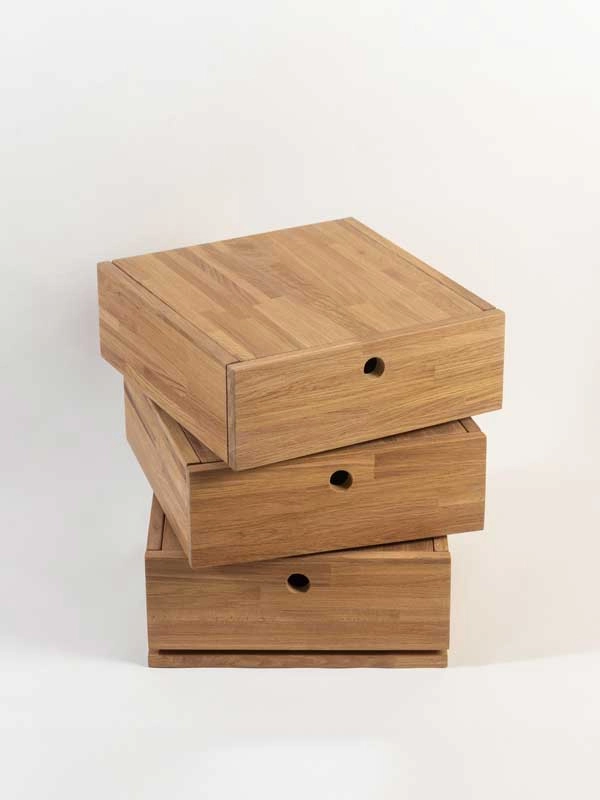 Cakana je neodoljiva, ljupka i inovativna rotirajuća drvena komoda koja će vas osvojiti na prvi pogled. Naizgled klasična komoda sa tri fioke, Cakana nudi jedinstvenu funkcionalnost – svaka fioka se okreće nezavisno, omogućavajući vam da lako pristupite svojim stvarima bez obzira na to kako je postavljena. Bilo da je smestite pored kreveta u spavaćoj sobi, na sred sobe kao zanimljiv komad nameštaja, ili kao pomoćni stočić pored sofe ili fotelje, Cakana će uneti dinamiku i stil.