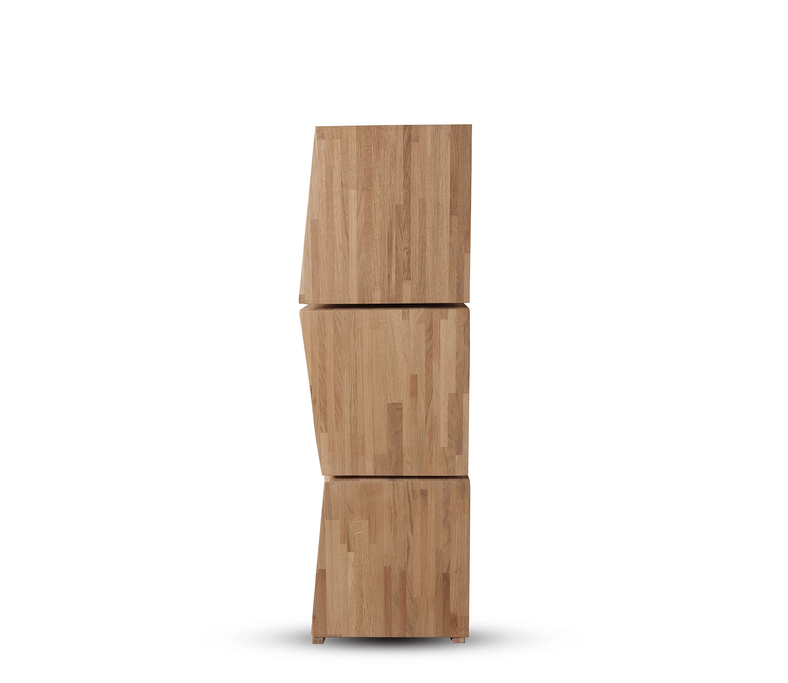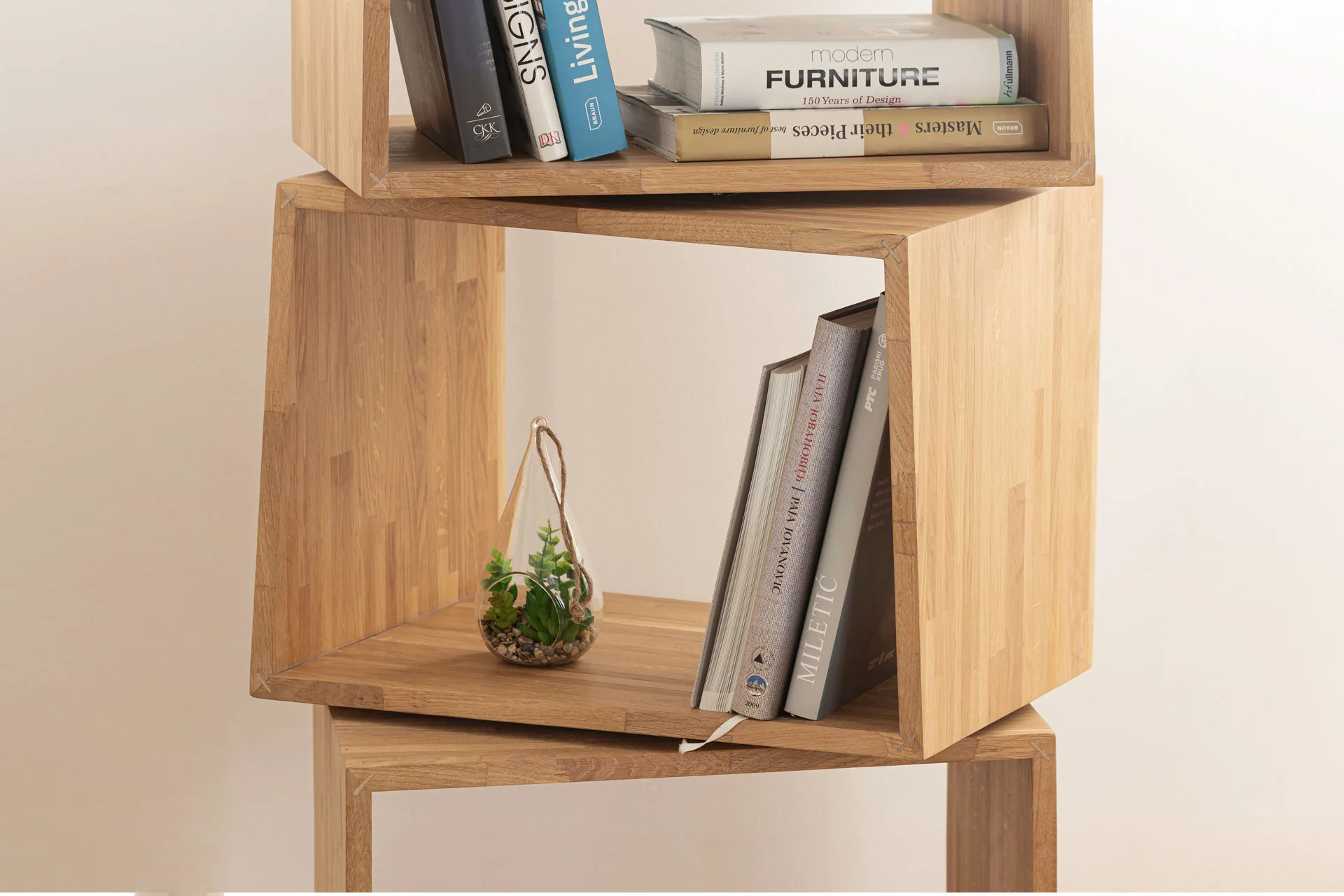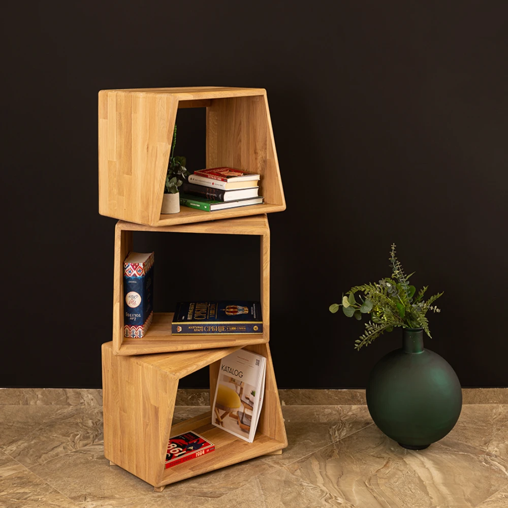Za sve ljubitelje asimetričnog i modularnog dizajna, predstavljamo originalne proizvode iz porodice „Stena“. Inspirisani prirodnim oblicima, ovi komadi nameštaja kombinuju oštre uglove sa glatkim, obrađenim ivicama, stvarajući upečatljive forme koje se spajaju bez vidljivog šava. Polica „Stena“ sastoji se od dva ili tri kubusa (kamena) koji se nezavisno rotiraju oko svoje ose, čineći je ne samo funkcionalnim komadom nameštaja, već i pravim skulpturalnim delom koje privlači pažnju. Ova polica poziva vas na igru, omogućavajući vam da kreirate različite oblike i rasporede u prostoru prema vašim željama i potrebama.