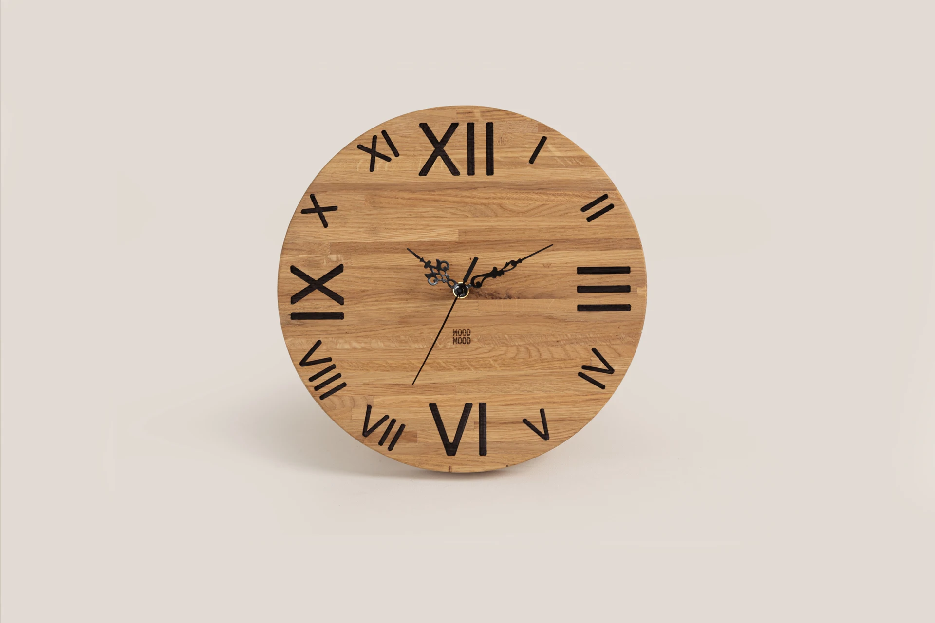 WMD satovi u varijanti sa rimskim brojevima umesto arapskih su satovi od punog hrastovog drveta. Iako pokazuju vreme, ovi satovi su bezvremeni zahvaljujući trajnim materijalima od kojih su izrađeni. Ovi drveni satovi lako se uklapaju u svaki enterijer – moderan, tradicionalan, šarenolik ili pak svedenih boja. Uz njih vreme prolazi mirno, jer imaju beščujan kvarcni mehanizam, koji se napaja samo jednom AA baterijom., koja se dobija uz sat na poklon. Kazaljke mogu biti raznih boja, boju i oblik kazaljki možete odabrati u našem izložbenom salonu u Takovskoj ulici 49a u Beogradu.