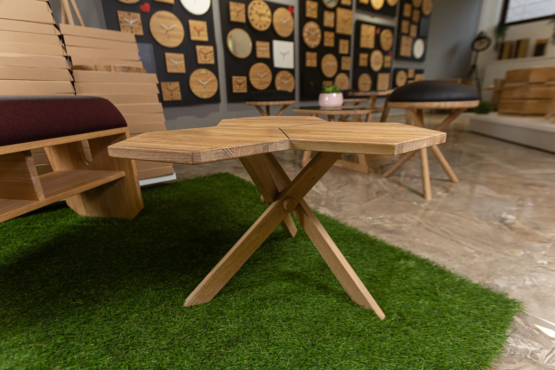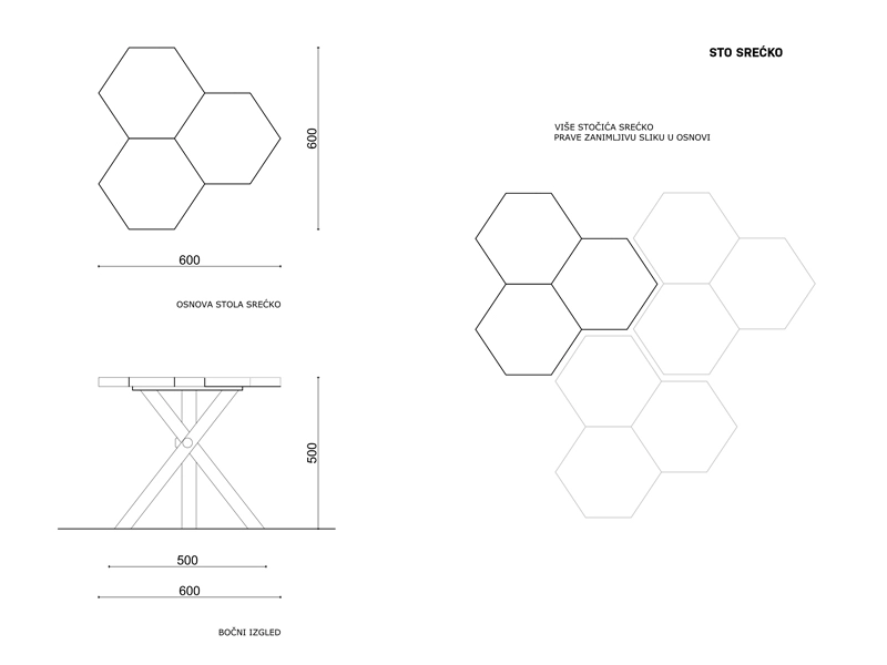 Stočić Srećko, izrađen od punog hrastovog, jasenovog ili bukovog drveta, nosi sa sobom lepotu i trajnost. Njegova površina je zaštićena organskim uljima i pčelinjim voskovima koji pružaju ekološku zaštitu i čuvaju prirodnu lepotu drveta. Inspirisan oblikom deteline, dizajn stočića Srećko omogućava da se više komada složi jedan na drugi, stvarajući tako zanimljive ritmične oblike u prostoru. Ovaj stočić osvežiće vašu dnevnu sobu, natkrivenu terasu ili čekaonicu u ordinaciji. Međutim, važno je napomenuti da ga ne smete postavljati pored grejnih tela ili izvora vlage kako bi se očuvala njegova lepota.