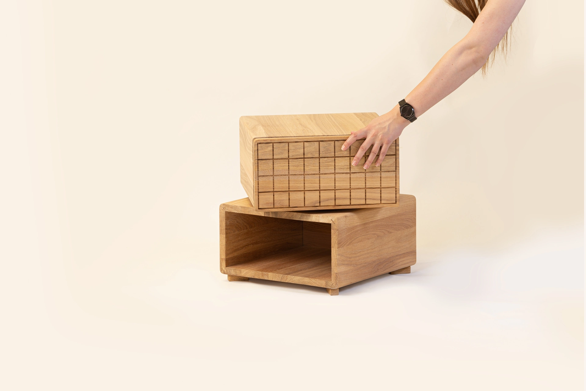 Stočić/Natkasna X/O donosi novu dimenziju stila i funkcionalnosti u WMD kolekciju, unoseći svežinu i savremeni dizajn u svaki prostor. Ovaj elegantan komad nameštaja sastoji se od dva glavna dela: donje police koja pruža dodatni prostor za odlaganje i gornje rotirajuće fioke koja je praktična i lako dostupna. Zahvaljujući svojoj svestranosti, X/O može se koristiti kao noćni stočić u spavaćoj sobi, savršeno se uklapajući uz vaš krevet i omogućavajući vam da lako dođete do svih potrebnih sitnica. Takođe, može poslužiti kao natkasna u dnevnoj sobi, pružajući prostor za odlaganje knjiga, daljinskih upravljača ili dekorativnih predmeta. Osim svoje funkcionalnosti, ovaj komad nameštaja ostavlja snažan vizuelni utisak. Njegov moderan dizajn i pažljivo odabrani materijali čine ga ne samo praktičnim, već i pravim estetskim draguljem koji će privući poglede i obogatiti vaš enterijer.
